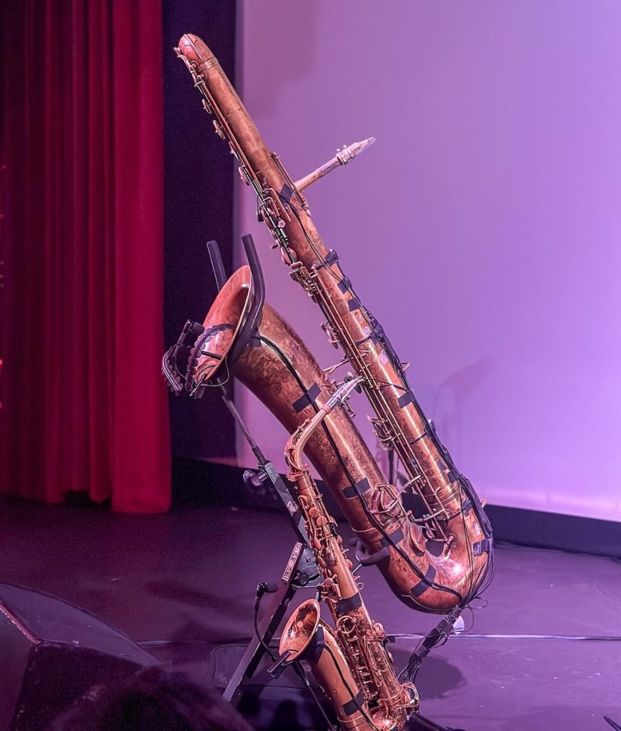 Por cerca de 70 minutos, nos dejamos hipnotizar por Stetson, quien hace un repaso de sus últimos álbumes. Tuvimos además el placer de escuchar una potente canción inédita para saxofón bajo que podría ser incluida en un futuro lanzamiento. Ver a Colin Stetson en vivo es una experiencia en sí misma: podemos ser testigos del esfuerzo que exige su técnica. Entre canciones como «Spindrift» (del álbum «All This I Do For Glory», 2017) o «The Six» (del álbum «The Love It Took To Leave You», 2024), un agitado Colin se detiene a estirar las manos, los brazos y la espalda, mientras ofrece una breve introducción y algunas anécdotas sobre sus canciones.